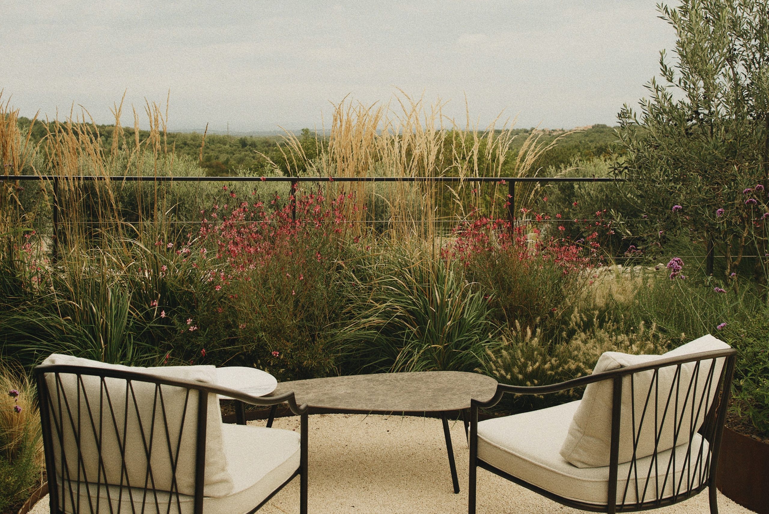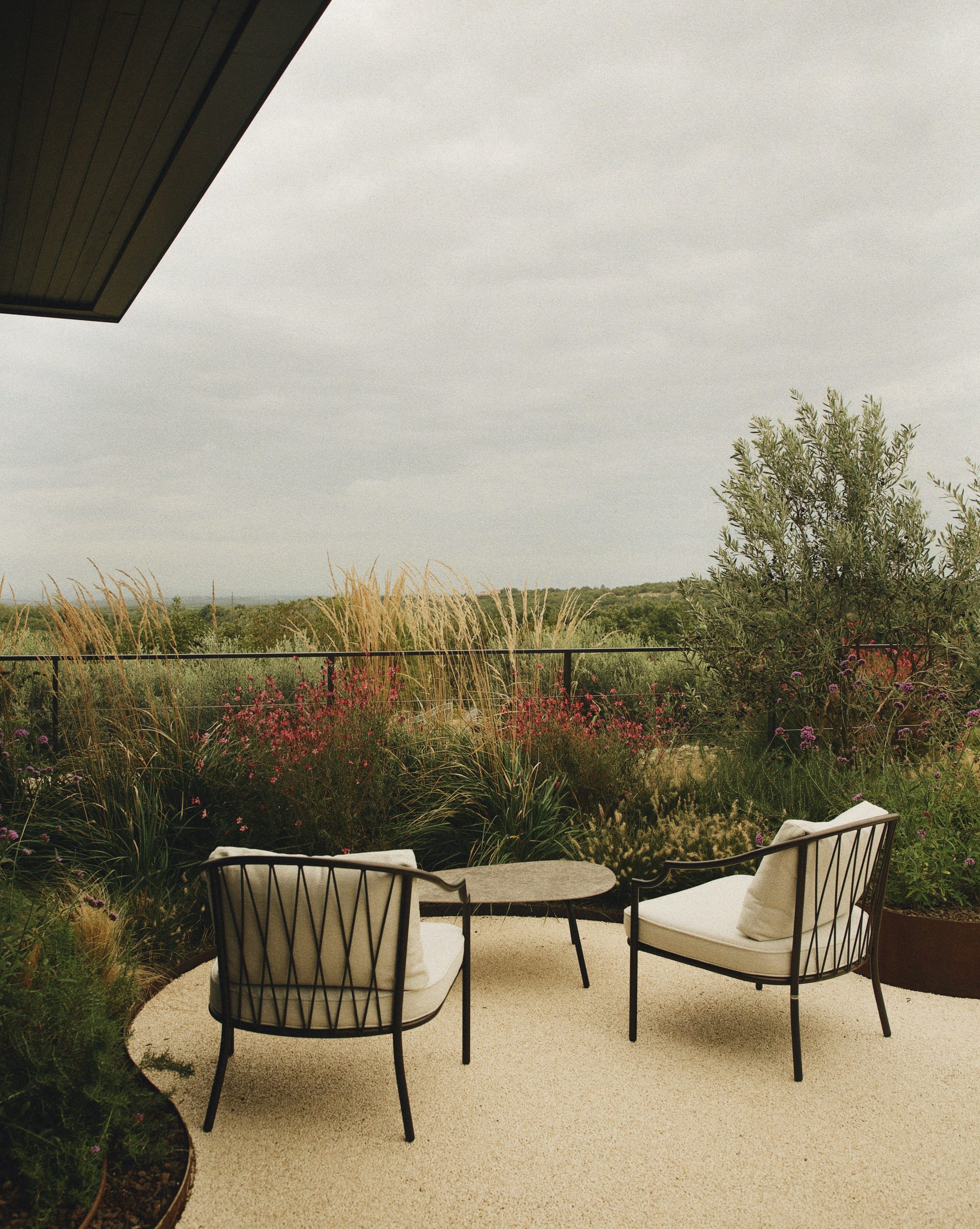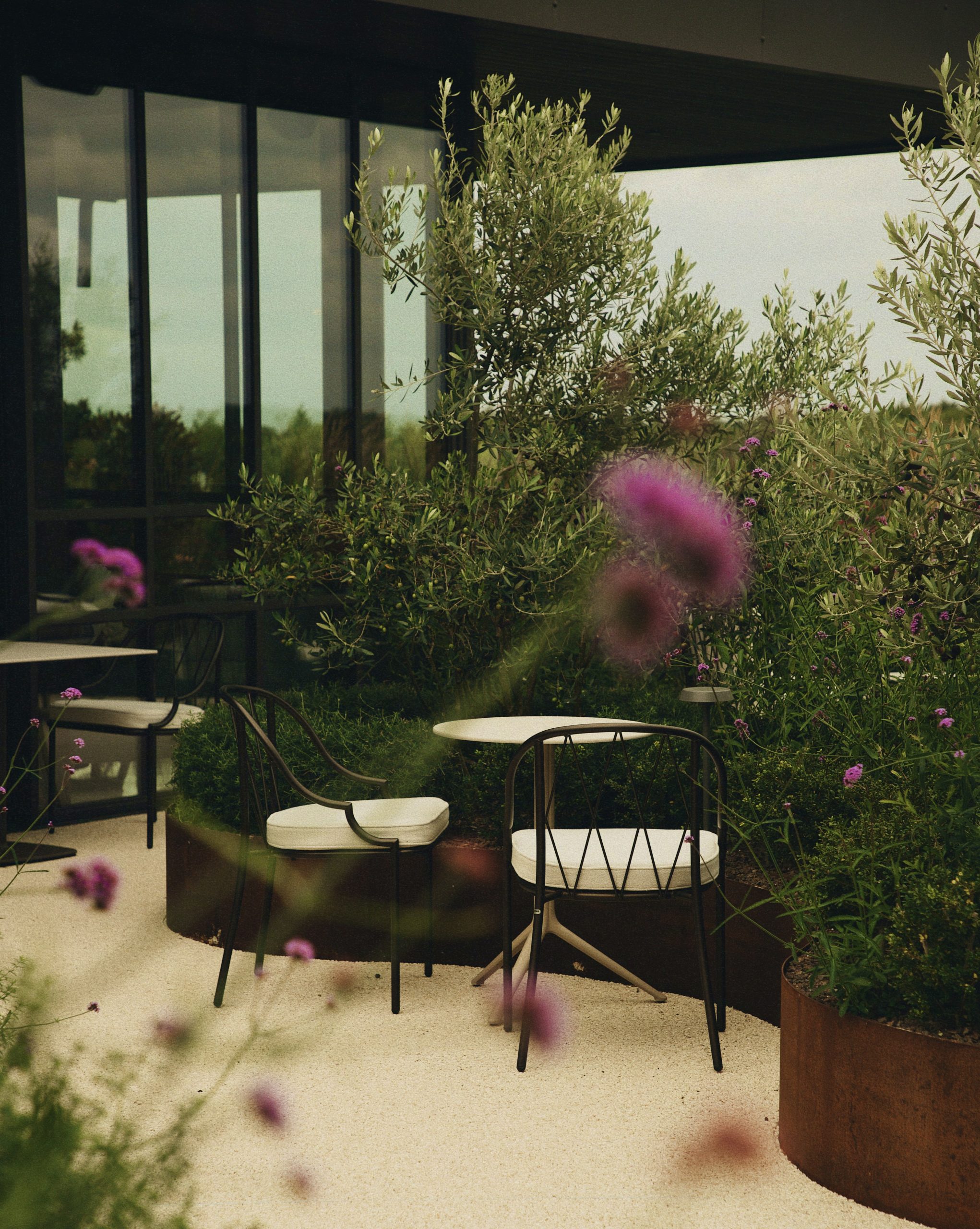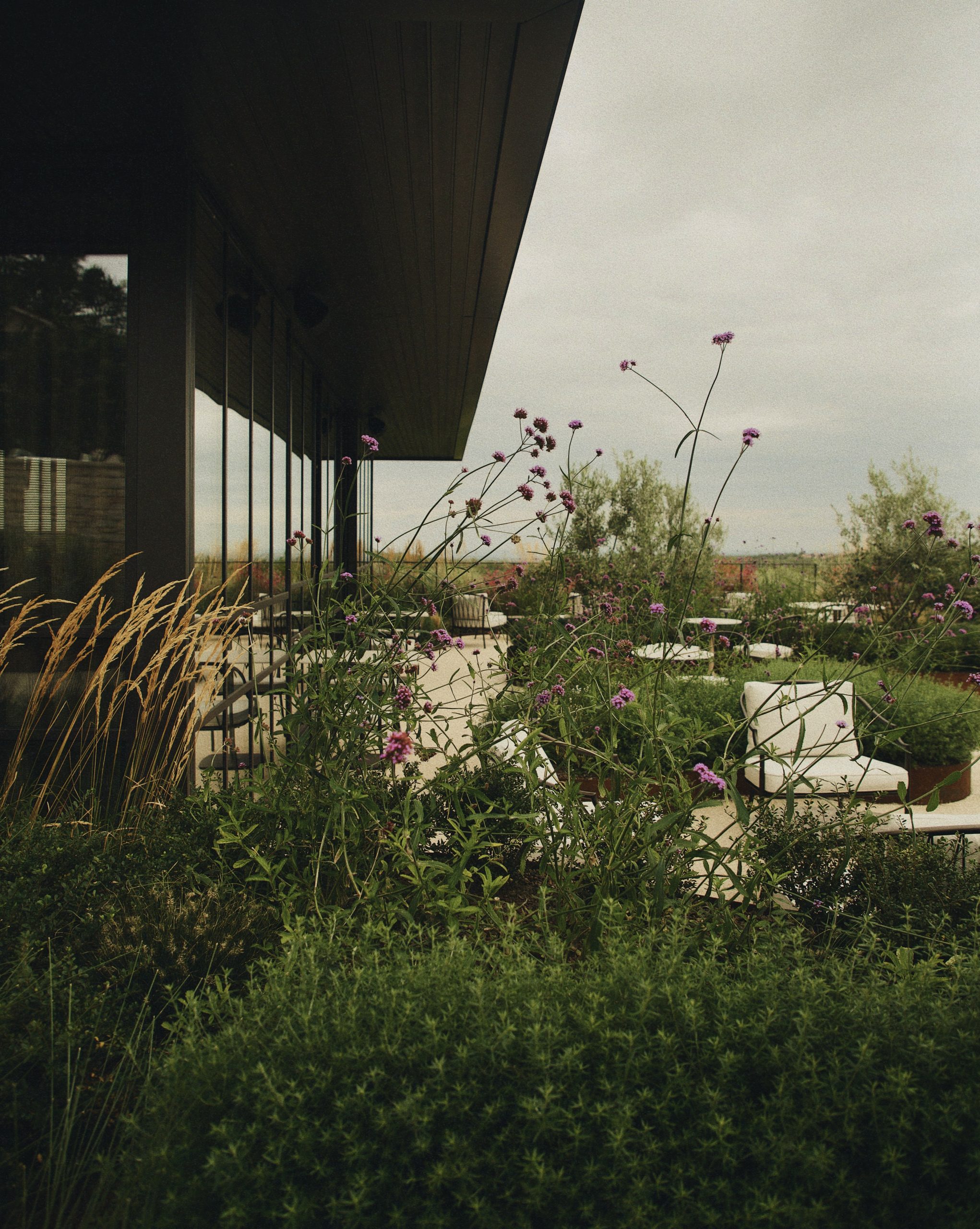 Bogato uređeni krovni vrt nad novim suvremenim proizvodnim pogonima vinarije Radovan omogućuje cjelovito iskustvo uživanja u vinima. Izdignute corten žardinjere, porozni plohe od kamenog tepih i bogata lepeza biljnog materijala stvaraju dinamičnu cjelinu.