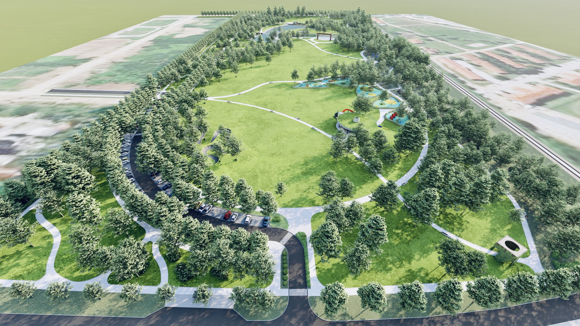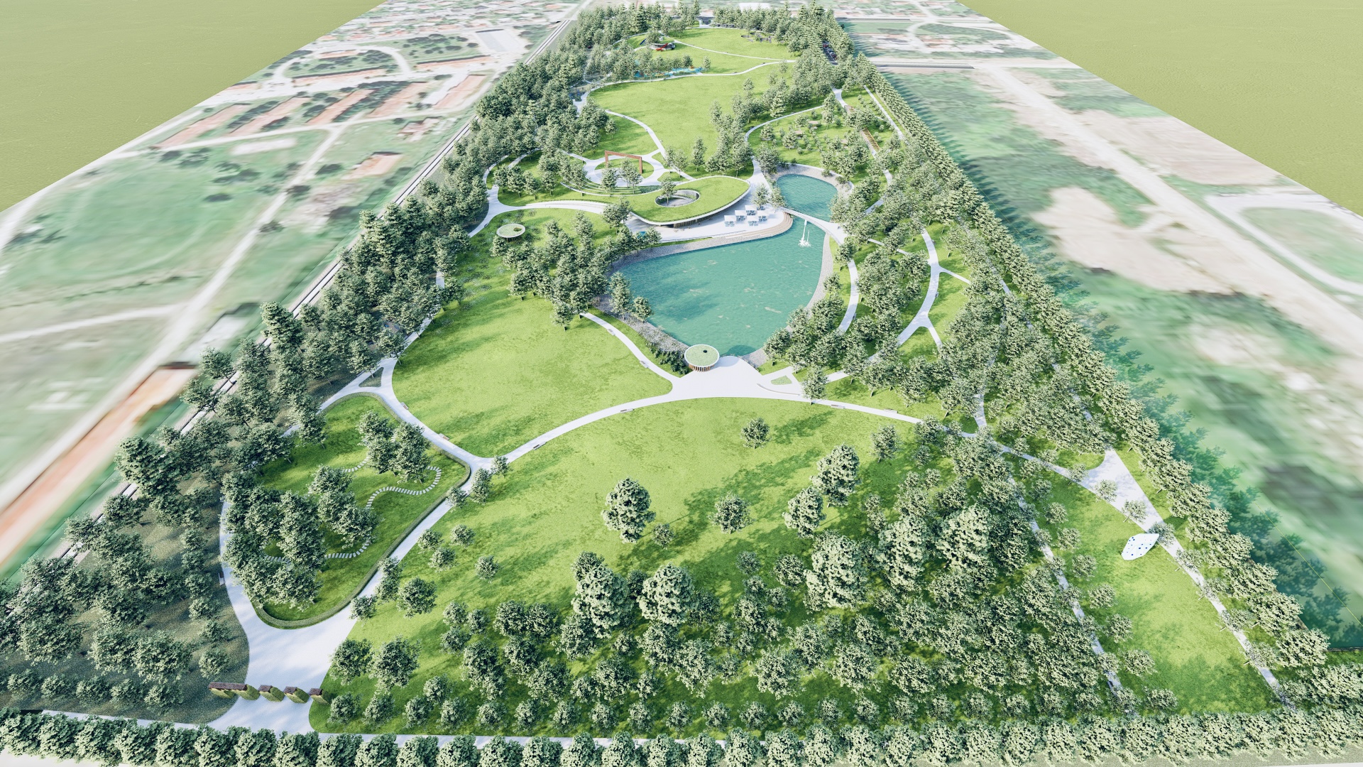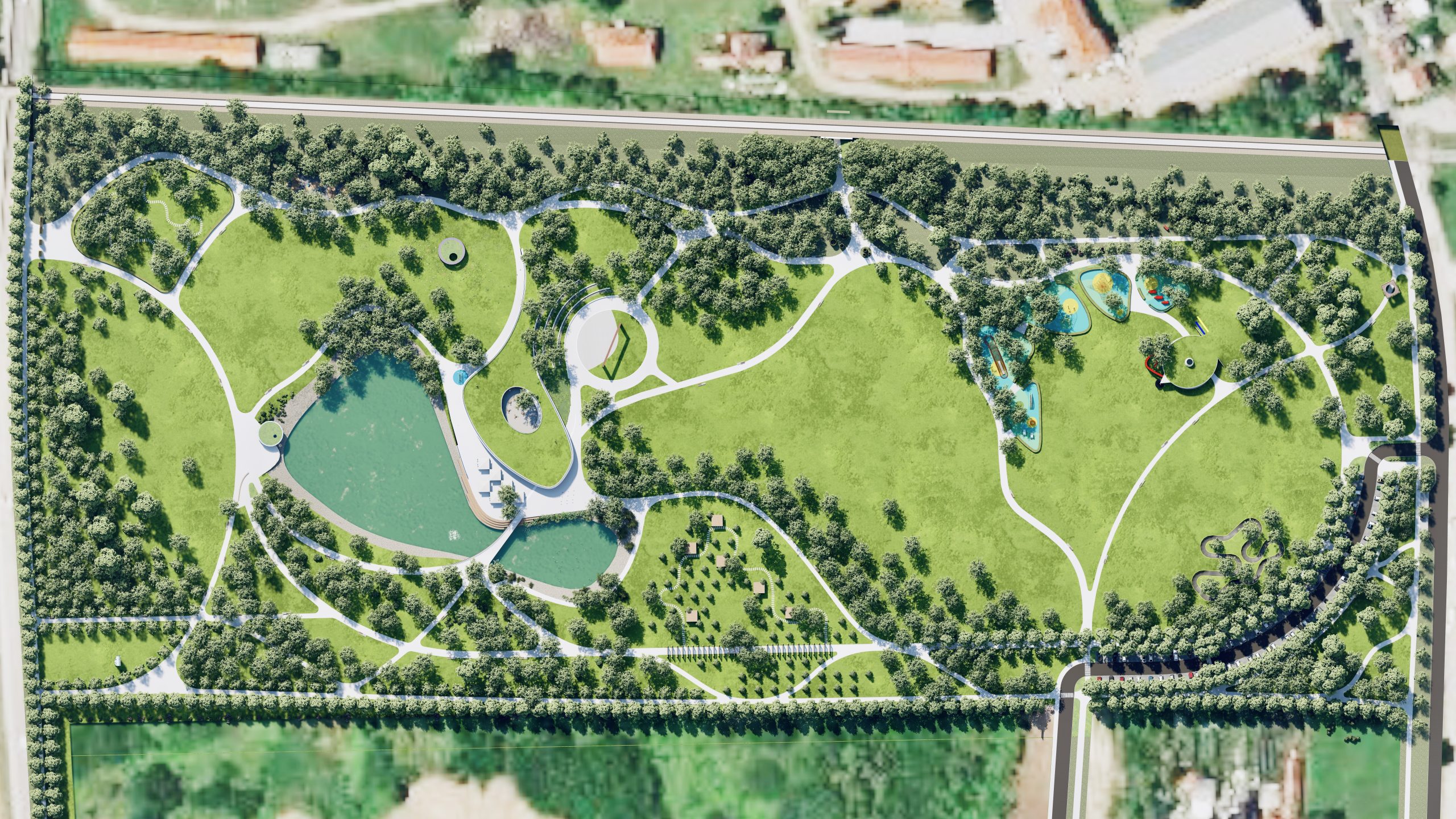 Novi gradski park nastao na zapuštenom prostoru bivše vojarne i hipodroma u Čakovcu. 16 hektara novih suvremeno uređenih zelenih površina za građane i posjetitelje. Jezero, parkovni paviljoni, dječja igrališta, spotski sadržaji i piknik zone novim su podhodnikom povezani sa gradskim tkivom. 1200 sadnica stabala i tisuće sadnica grmlja i trajnica stvorit će ugodan zeleni ambijent i potaknuti obnovu bioraznolikosti.