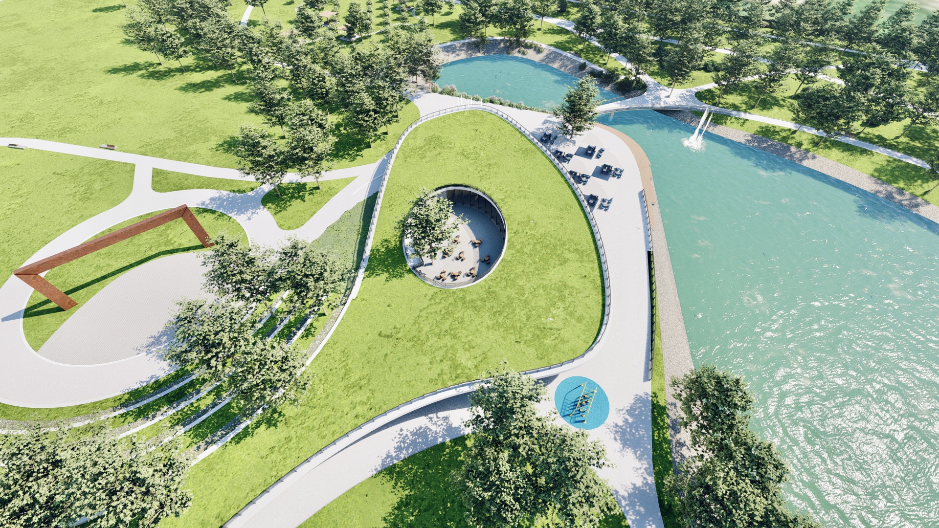 Jezero, parkovni paviljoni, dječja igrališta, spotski sadržaji i piknik zone novim su podhodnikom povezani sa gradskim tkivom.